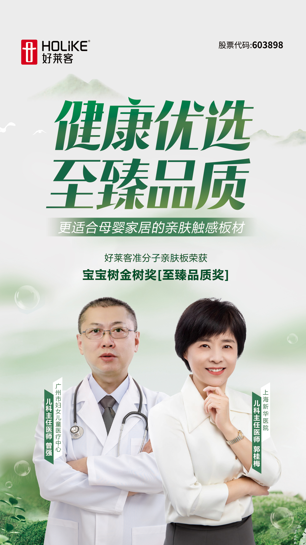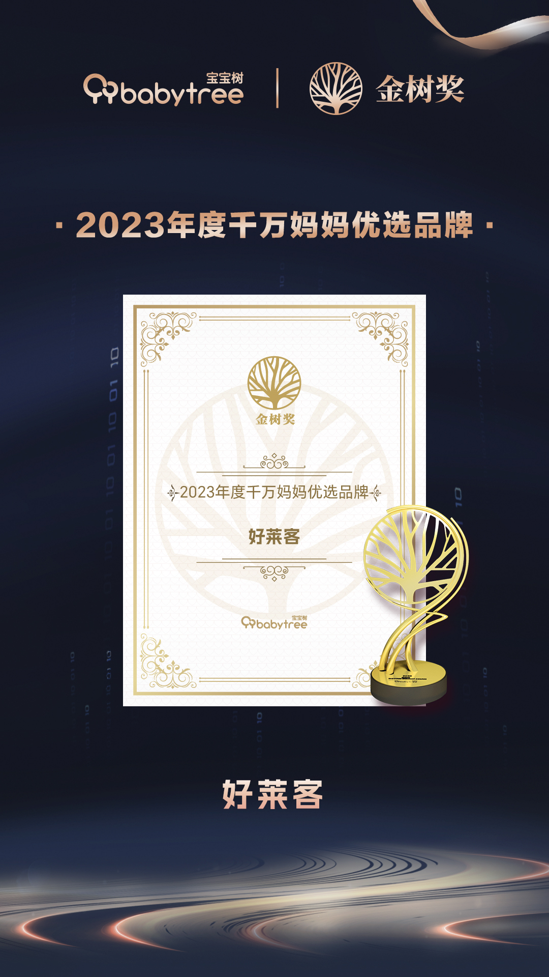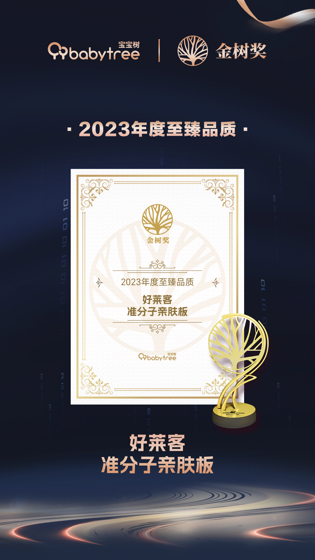 2023年,好莱客连续四年蝉联金树奖“千万妈妈优选品牌”殊荣,是品牌实力与产品品质的见证,也是千万妈妈们对好莱客品牌理念的认可。未来,好莱客和宝宝树将继续携手围绕母婴家居健康问题积极探索,为更多母婴家庭提供专业的服务和解决方案,推动儿童家居的安全标准再升级,为中国新生代母婴家庭提供安全的家居生活空间,助力孩子们健康快乐成长!