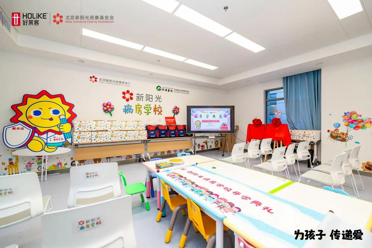 多年来,好莱客一直专注于为孩子们打造健康环保的原态潮家,构建了一个又一个的健康园地。作为一个有社会责任感与担当的企业,好莱客在关爱孩子公益方面也未曾缺席。原态11年,好莱客携手北京新阳光慈善基金会在全国多地成立新阳光病房学校,以原态环保空间守护孩子们的快乐成长!截止2023年12月,好莱客已资助了23所病房学校,并为每一所学校教室捐赠的原态家居,从材料筛选到设计都彰显用心,给小朋友打造一个充满活力兼顾舒适的学习空间。