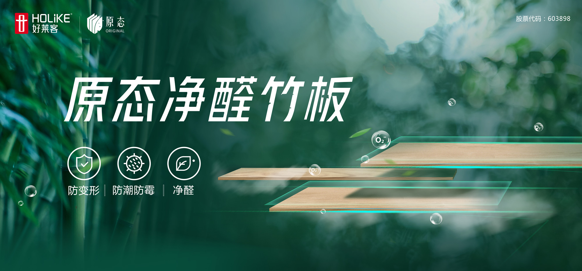 作为行业环保先行的倡导者,好莱客紧跟国家政策步伐,以“践行绿色发展”为理念,不断进行材料技术创新升级。早在2020年,好莱客就已创新推出具有“竹纤维基材”及“纳米净醛抗菌饰面”双重专利技术的原态净醛竹板,不仅积极践行国家倡导的以竹代木、以竹代塑,促进生态资源可持续发展,更为广大消费者定制更高品质健康家。