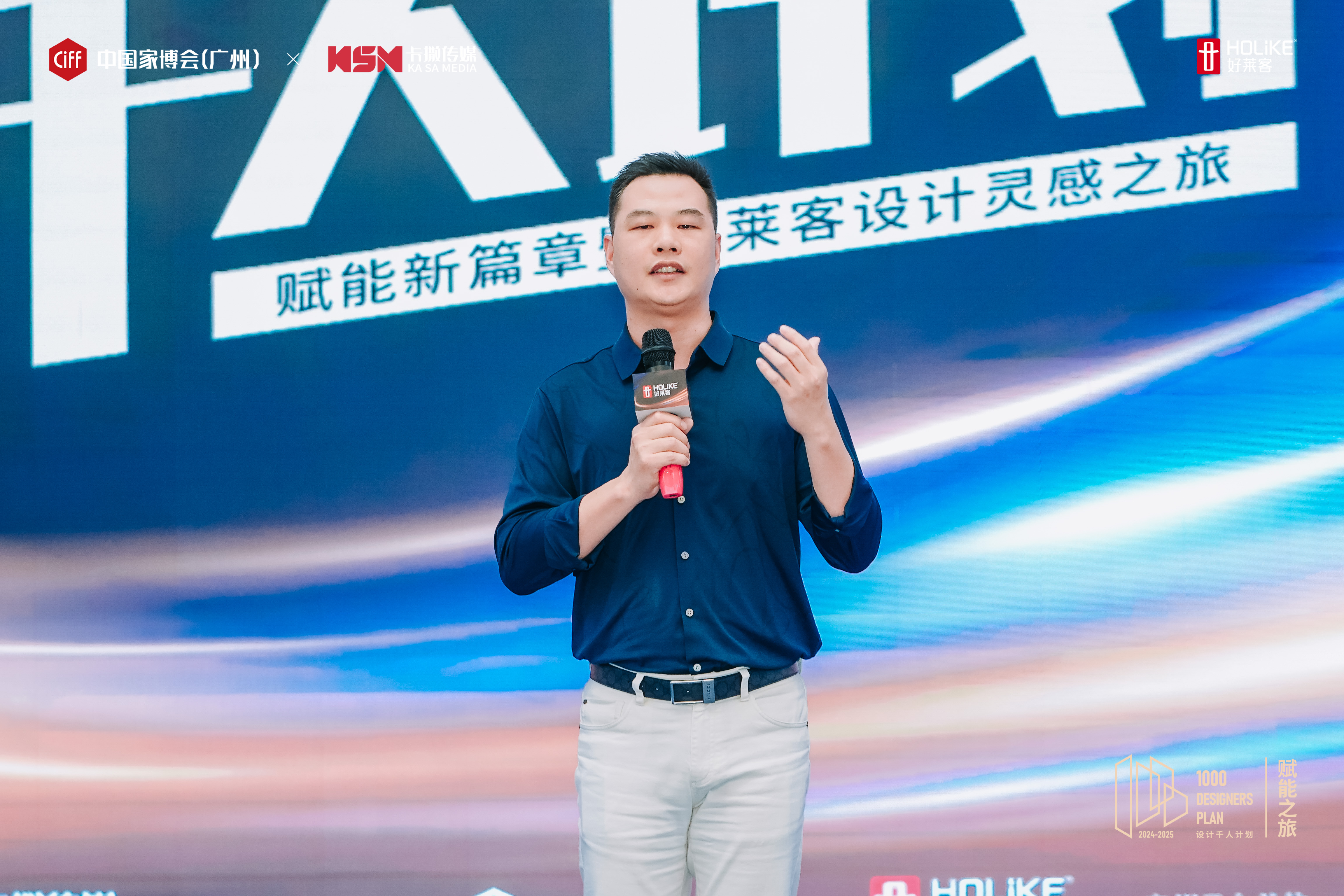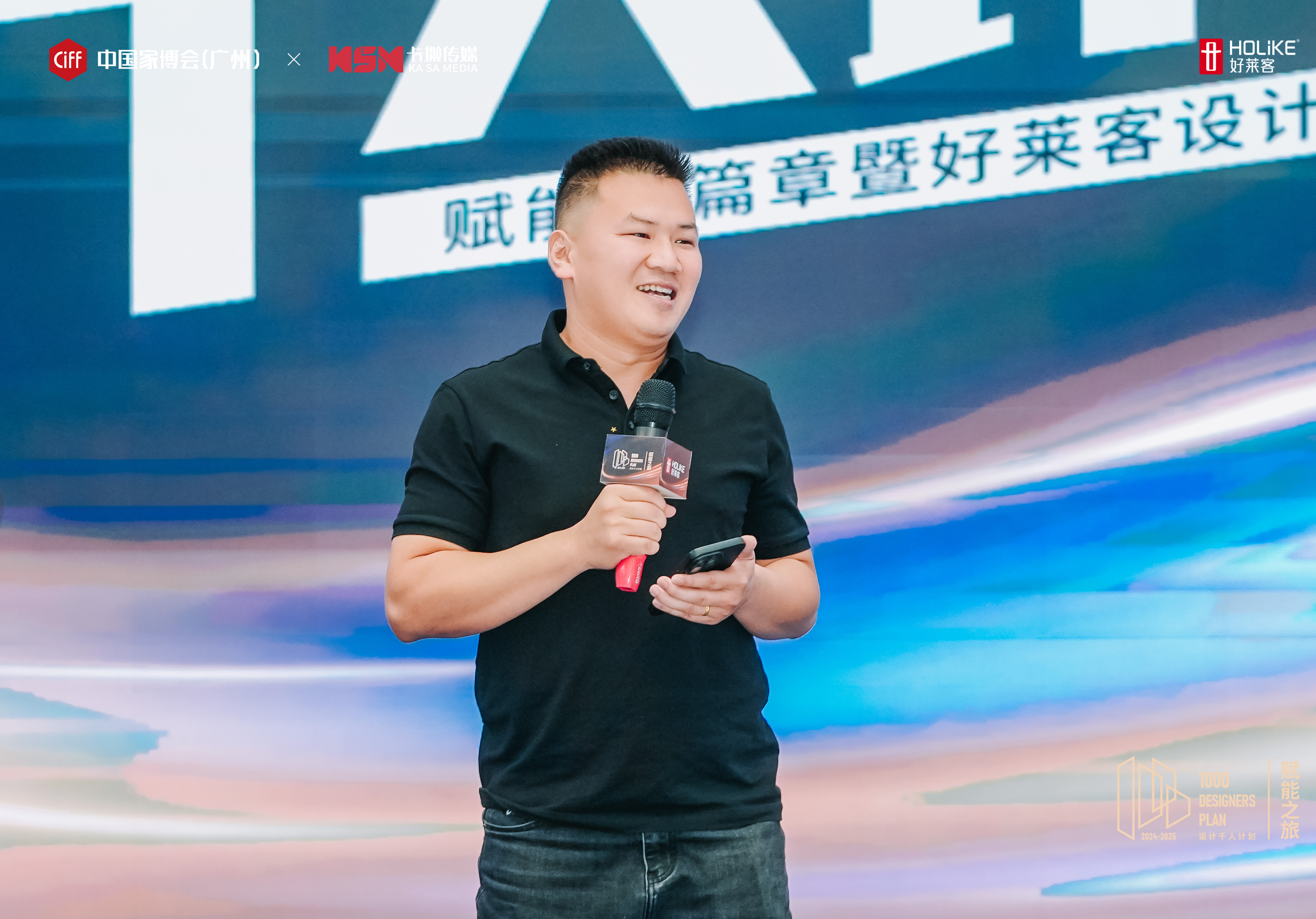 好莱客营销中心大区总监邵斌发表致辞,他介绍说“好莱客始终坚持原创设计,多年来持续深耕设计生态圈,通过多形式活动,多跨界项目与一众设计大咖同频共振,建立了非常深厚的价值链接”。在未来,他也期待越来越多的先锋设计大咖与我们共创、交流,携手开启家居设计的新篇章。