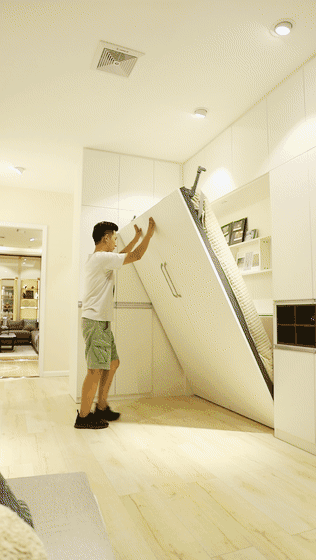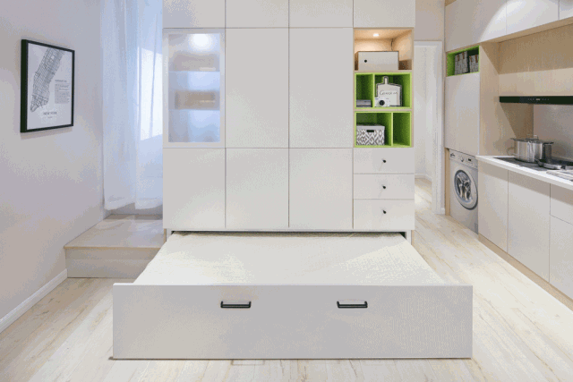 隐形床是很多小户型容易被种草的家具产品。简单来说,隐形床就是将床和柜体结合,随开随用,避免空间小放不下床的尴尬,还能留出位置开展其他活动。