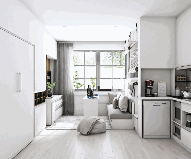 实用的变形家具,除了使用方便,最重要的还是占地面积要小。对于不好挪动还占空间的家具们,可以给他们安个“隐身技能”。