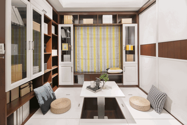 榻榻米地台的强大功能,相信大家也有所耳闻。表面是一个聊天看书的休闲区,底部储物能力更是惊人,灰常能干。