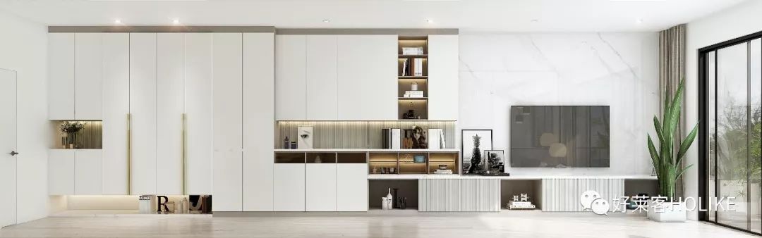 错落有致的柜体布置,门板与开放格的交错设计,有藏有露,在满足储物空间的同时,细化分区、明确生活动线,让空间更整洁,让生活更舒适。
