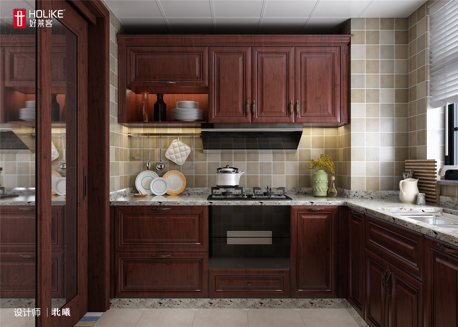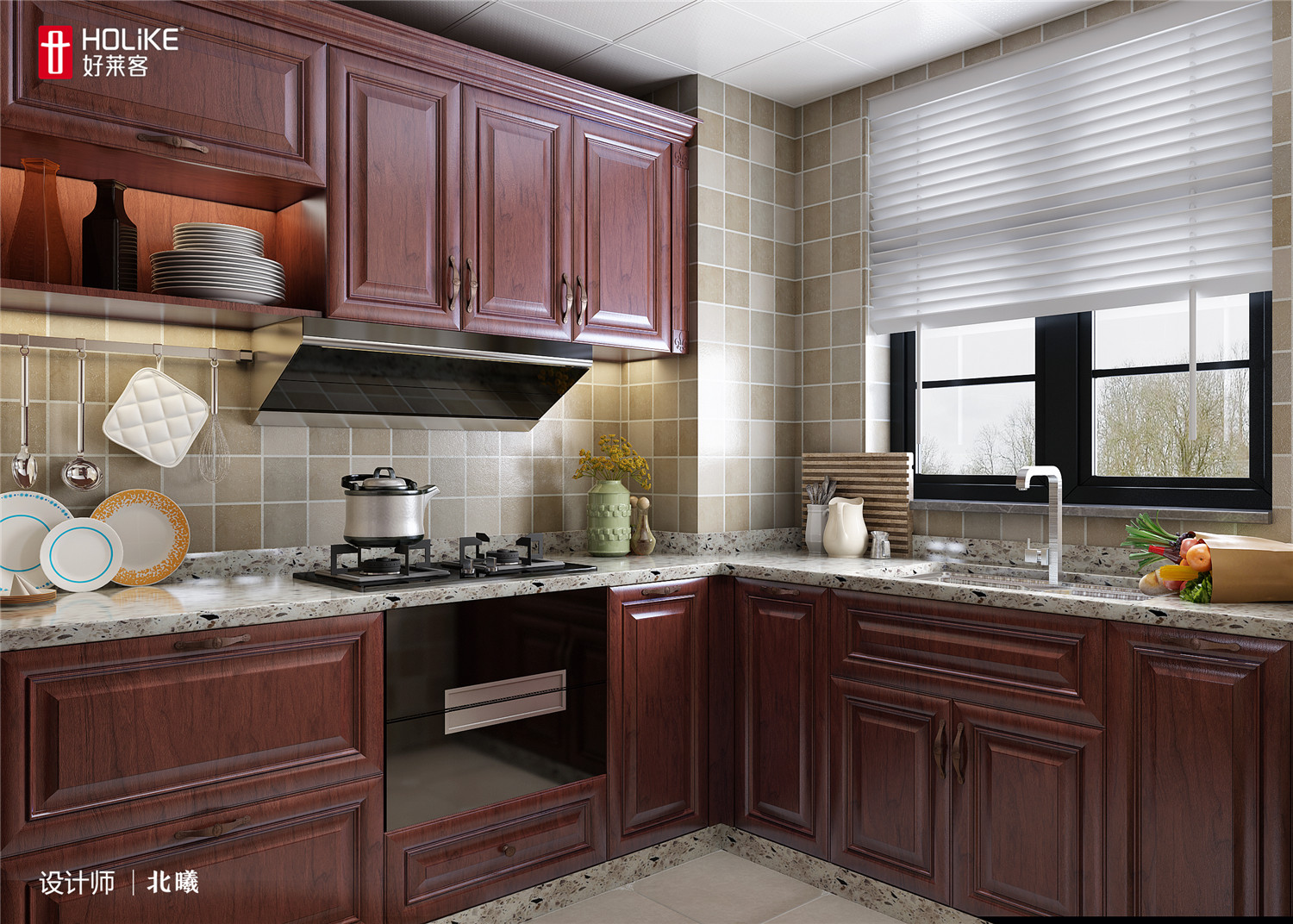 厨房面积不大,做L型布局空间利用率高。每到周末,爸妈就会一起下厨房为女儿准备饭菜,两人同时操作也不显得拥挤。