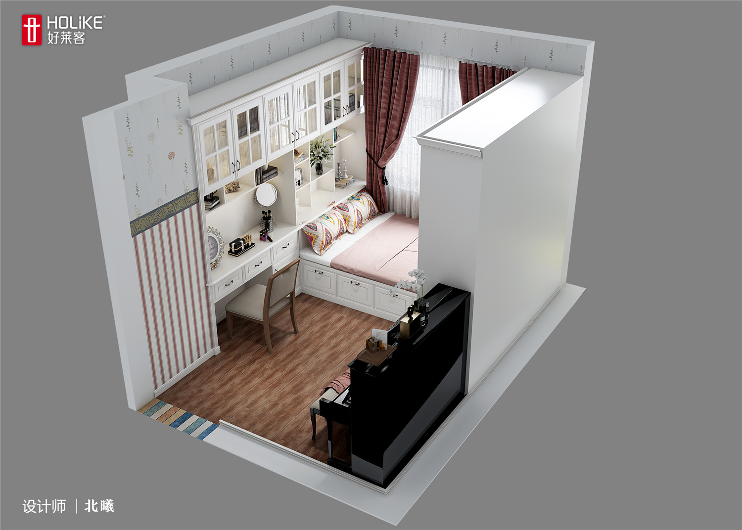 2.业主是音乐老师,卧室要同时满足休息、收纳、梳妆及放下钢琴