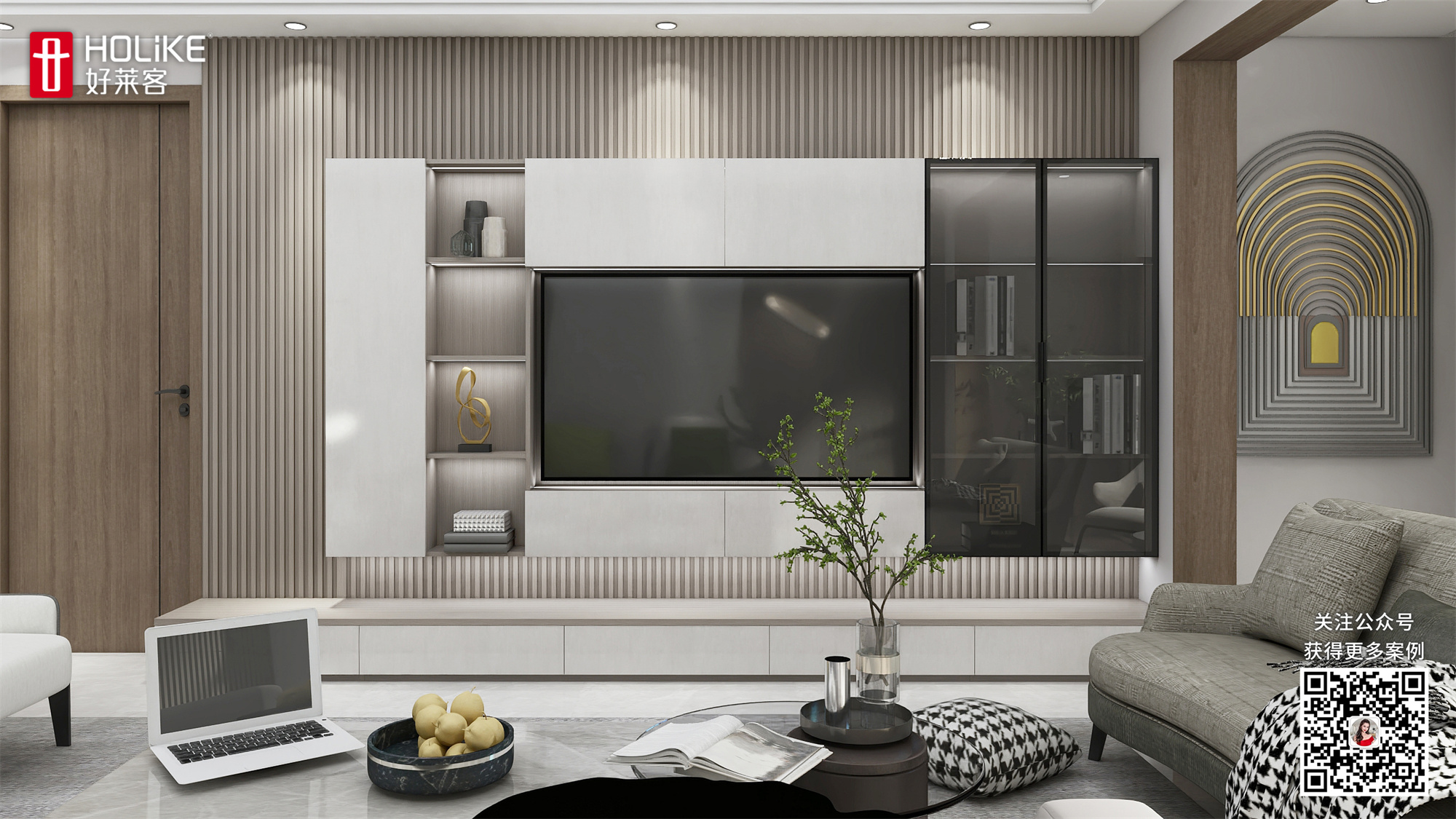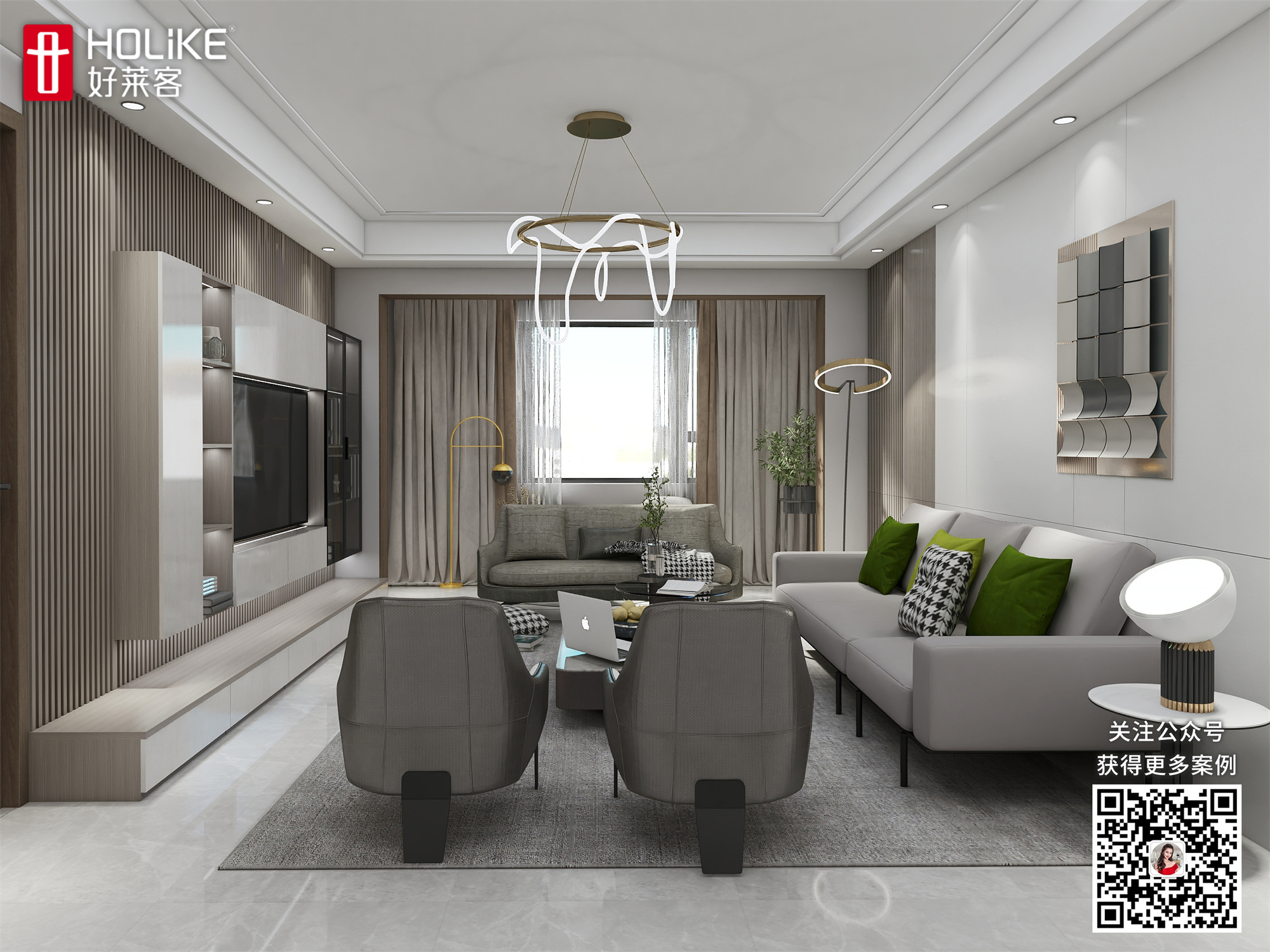 2、客厅要有充足的储物空间,还要保证空间通透明亮。