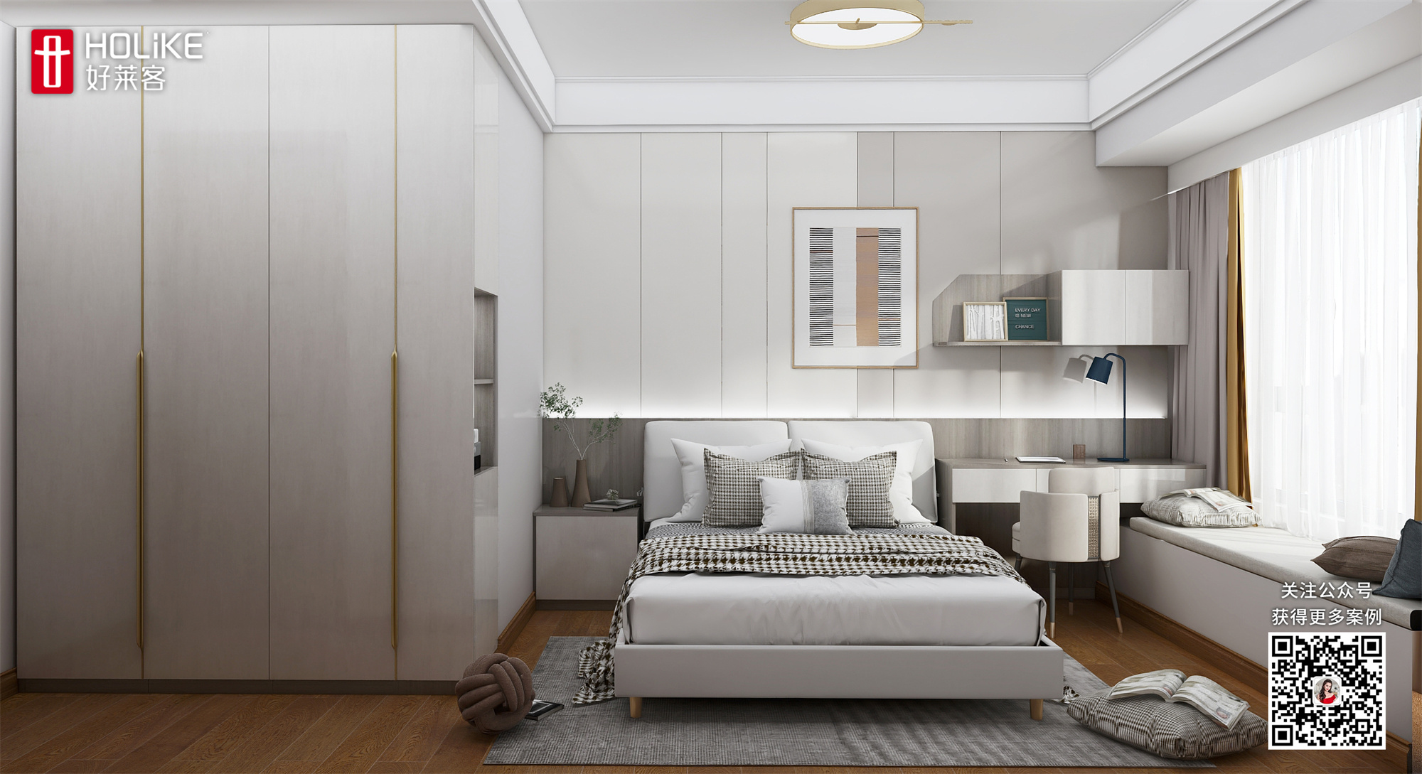 4、次卧舍弃右侧床头柜,书桌延伸桌面至飘窗,方便学习