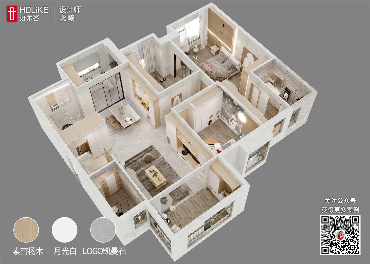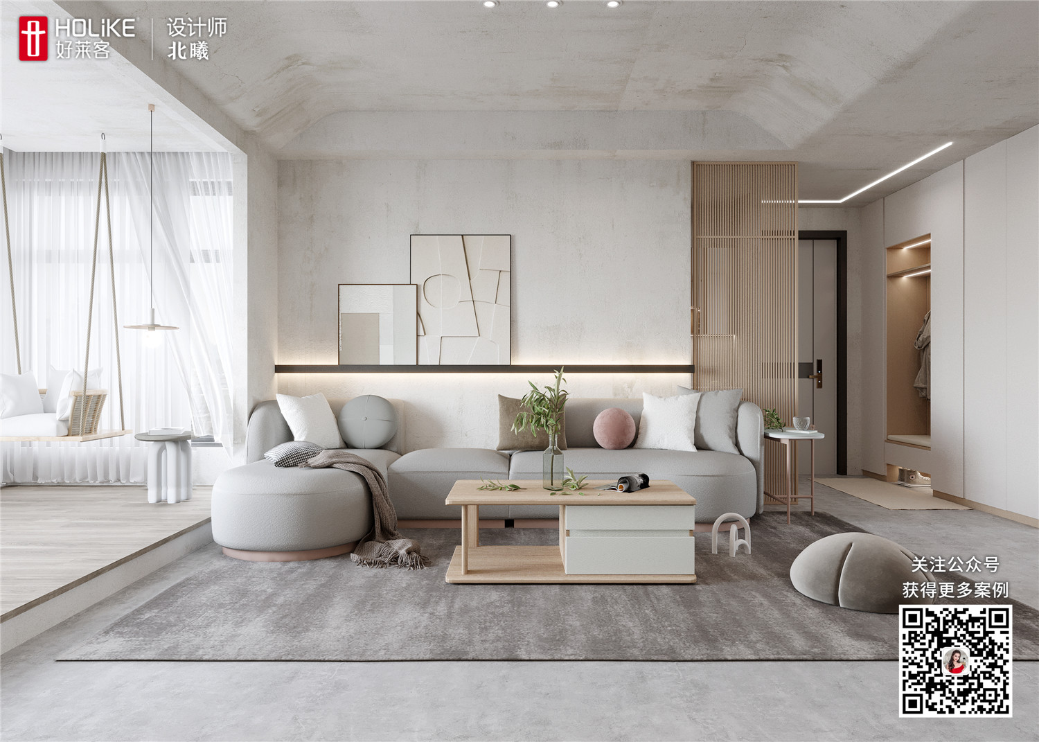 1、采用好莱客2021新品自然主义系列,打造出淡泊自然的家居氛围;2、将储物间拆除做成开放式儿童玩乐区,客厅和阳台的柜体加入猫咪步道;3、打通主卧和书房,利用玻璃推拉门隔开,空间通透不压抑。