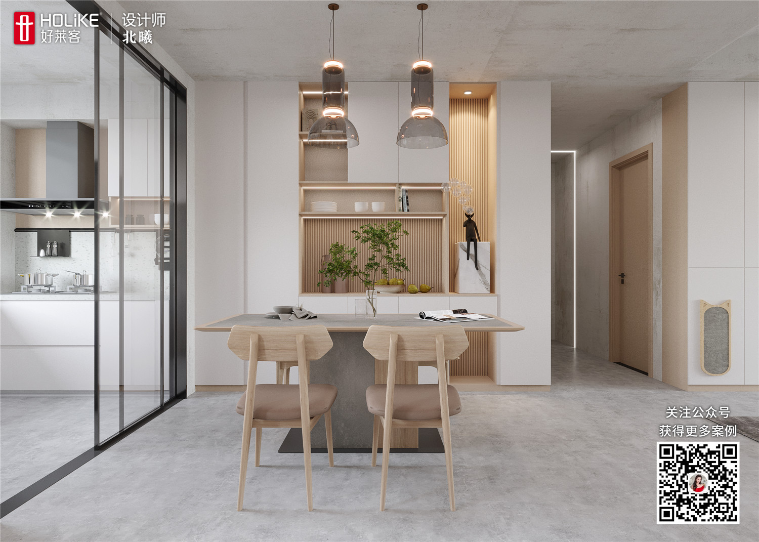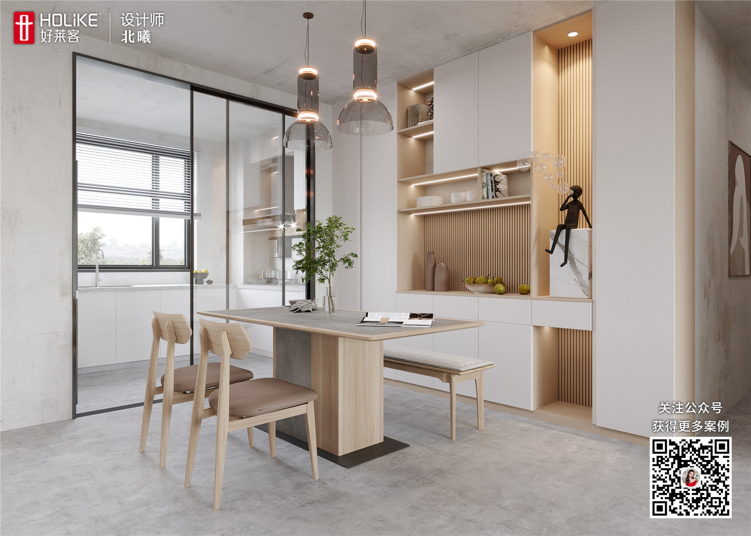 餐厅与全屋风格保持一致,采用经典的纯白色+大地色系木纹的配色方案,营造出自然质朴的家居氛围。全家人每天在这里用餐,都倍感温馨自在。