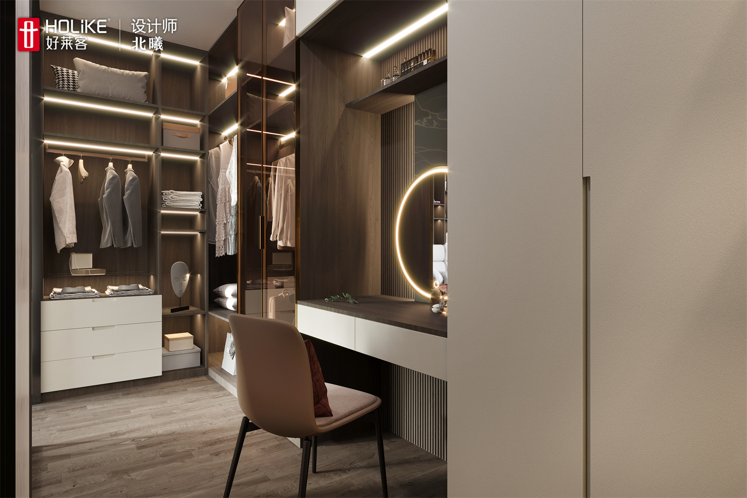 内嵌灯带,完美提升衣帽间的氛围,空间质感直线上升。