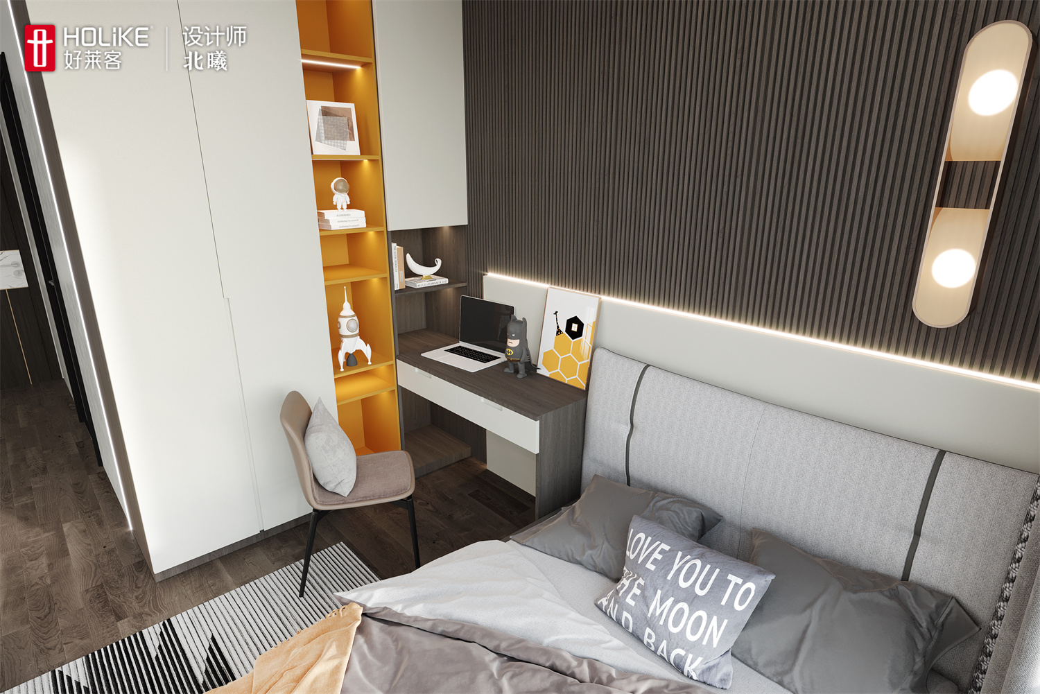 开放格的一抹亮色打破空间的沉闷,让男孩房更活泼,更符合孩子的个性。
