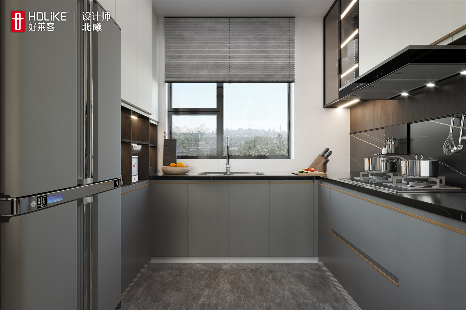 考虑到业主的父母喜欢中餐,且下厨时间较长,设计师根据他们的需求打造了U型厨房。
