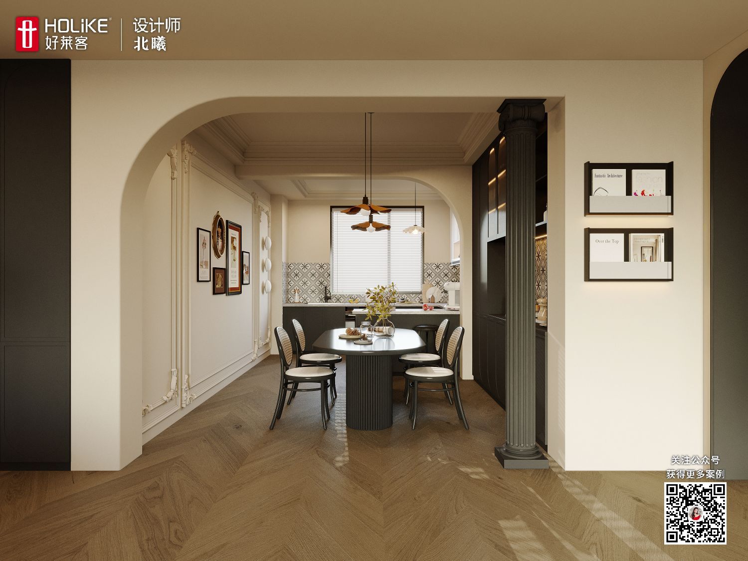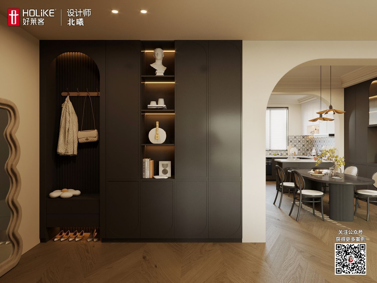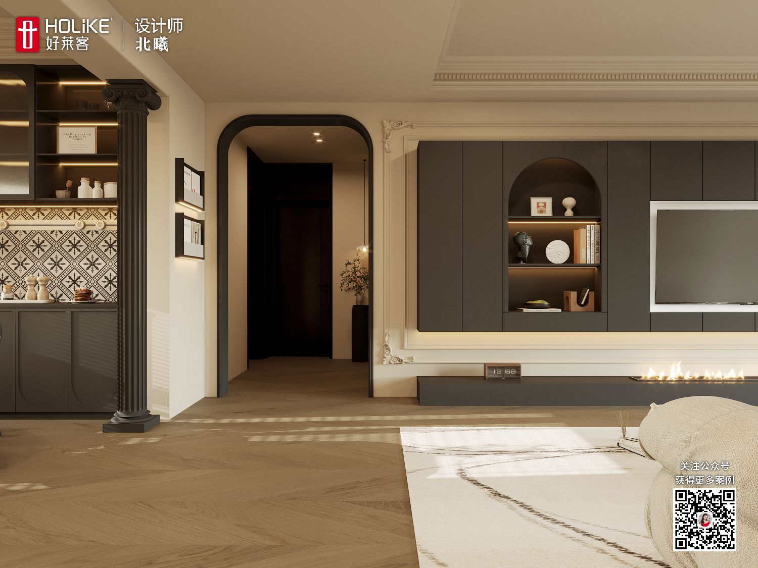 橱柜由杏白吊柜+中木灰地柜组合而成