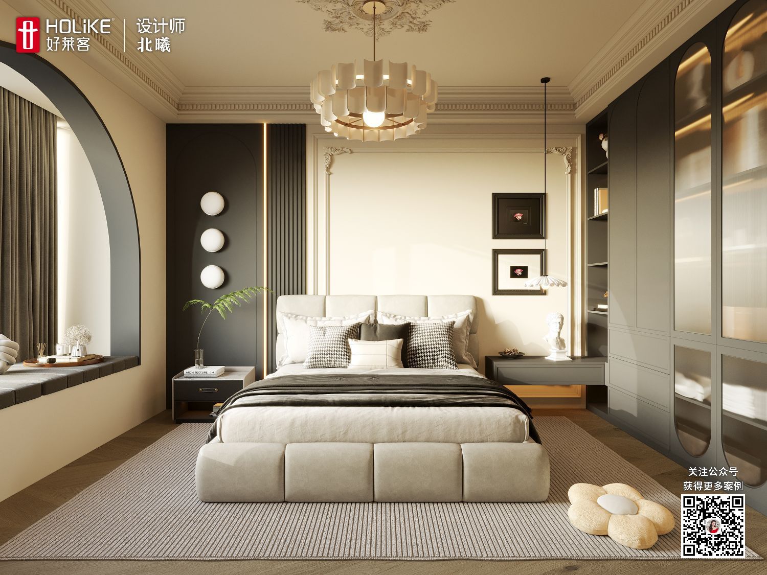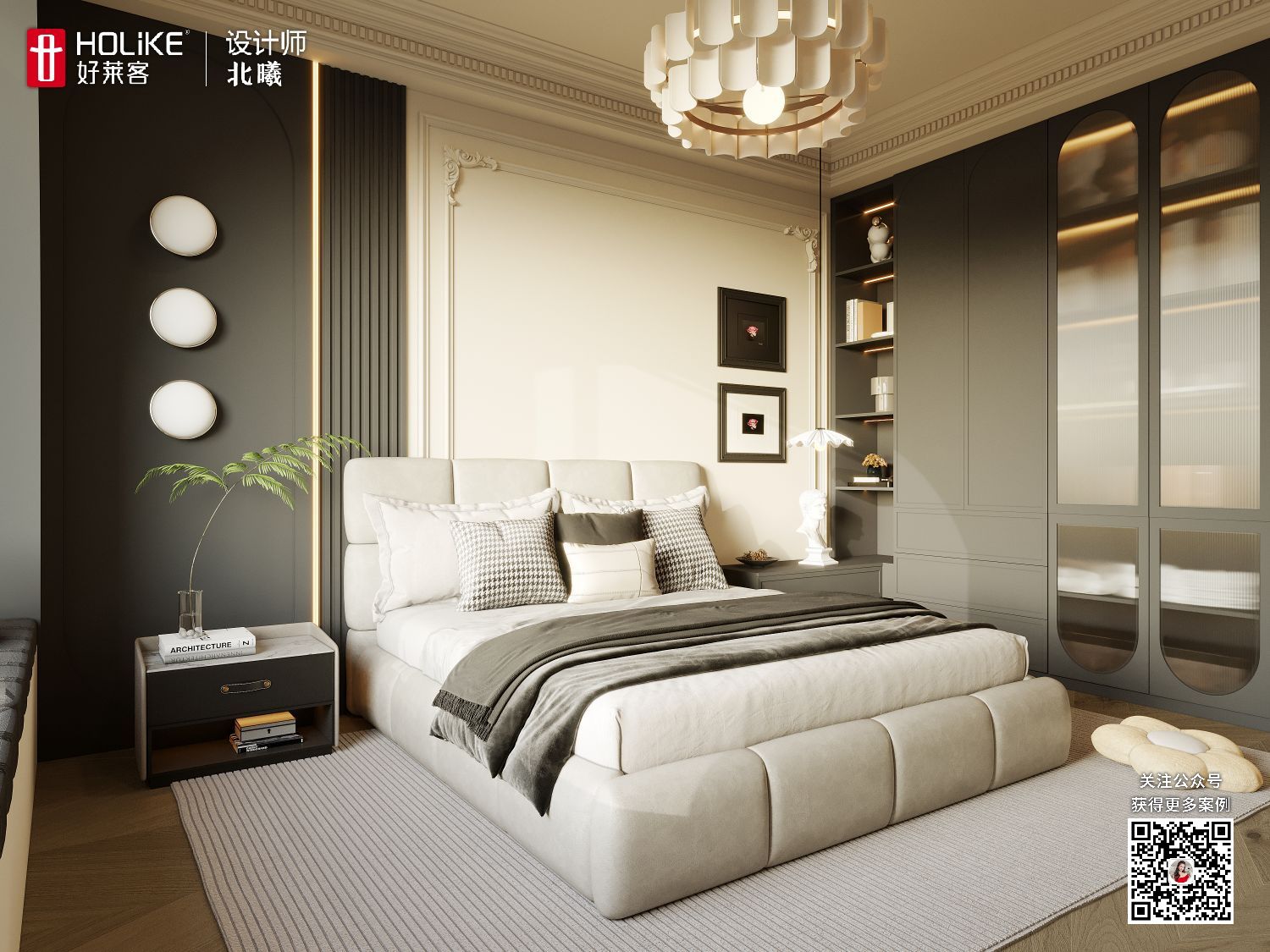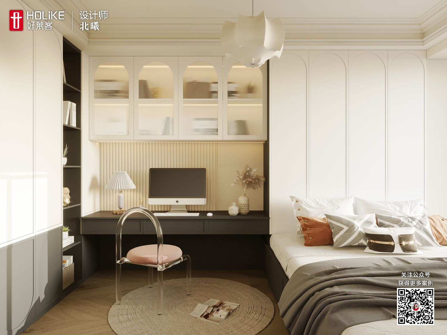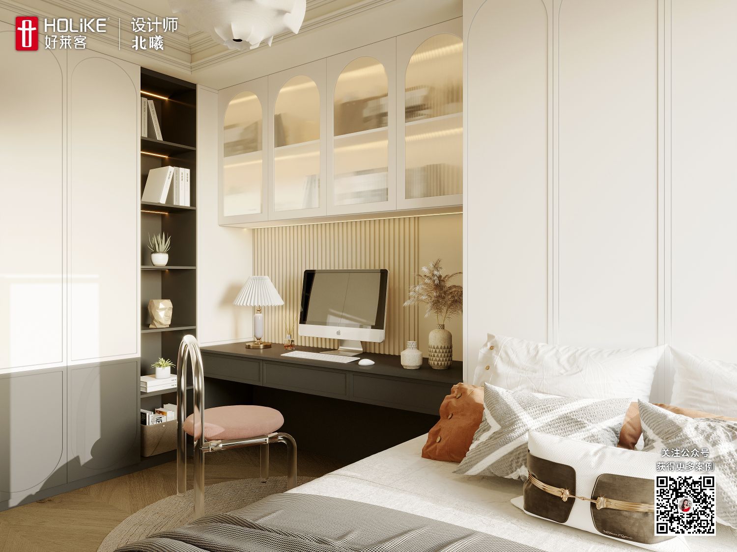 橱柜由杏白吊柜+中木灰地柜组合而成