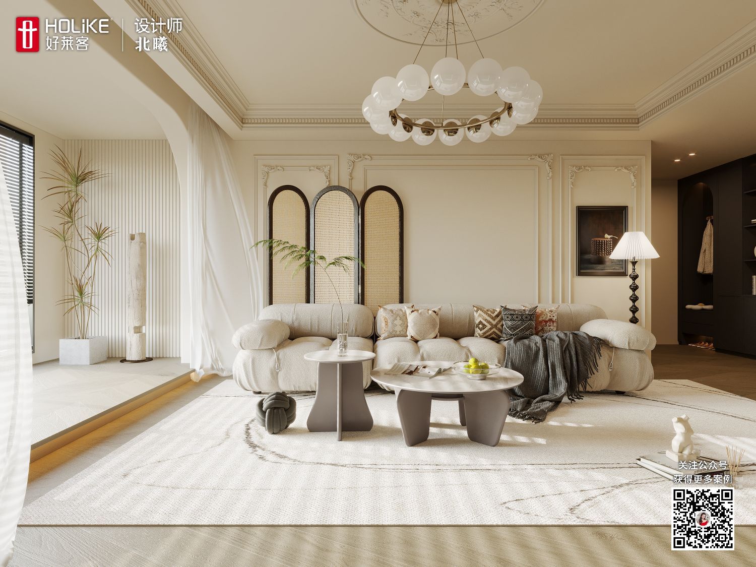 圆润的茶几、慵懒的沙发、舒适的地毯